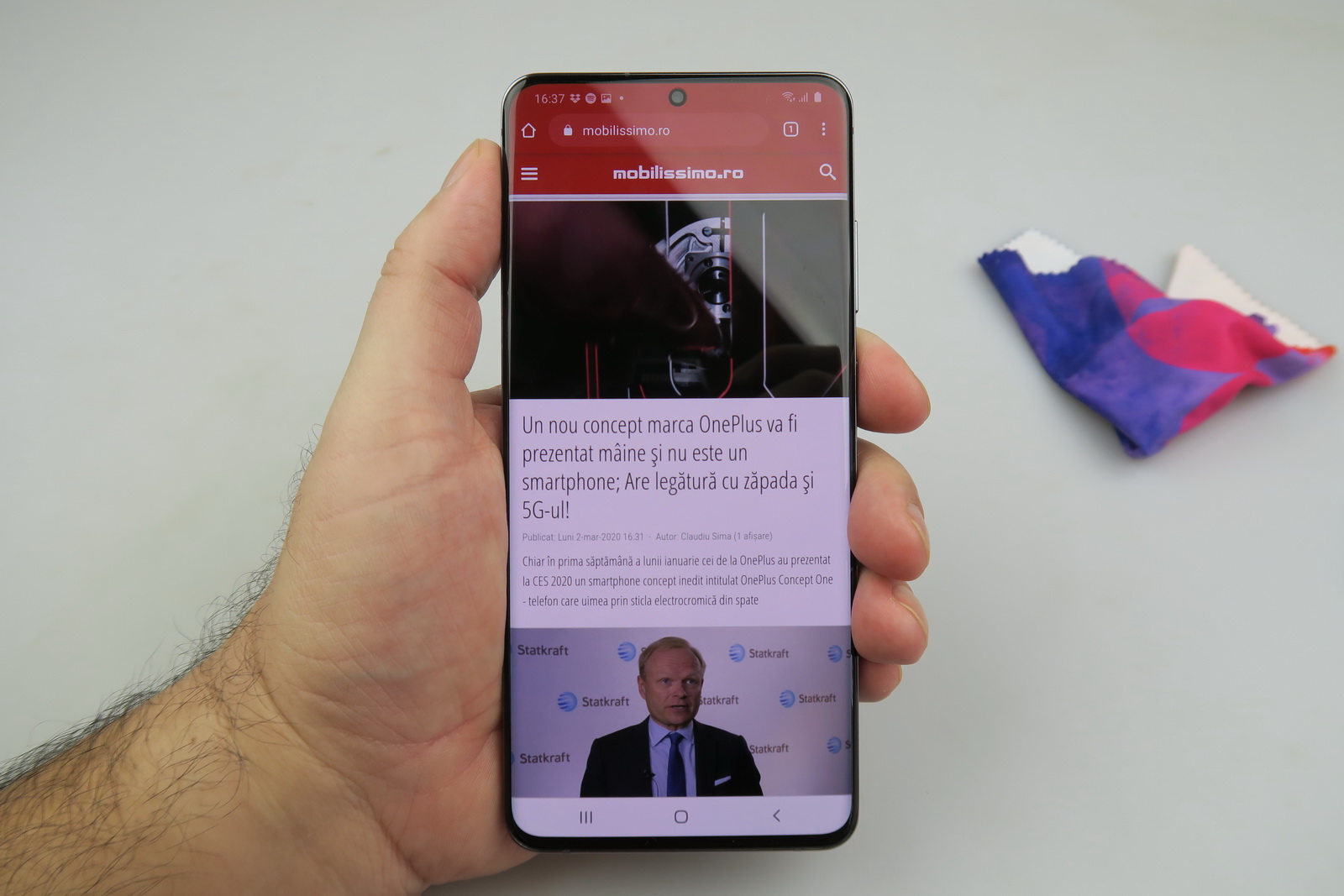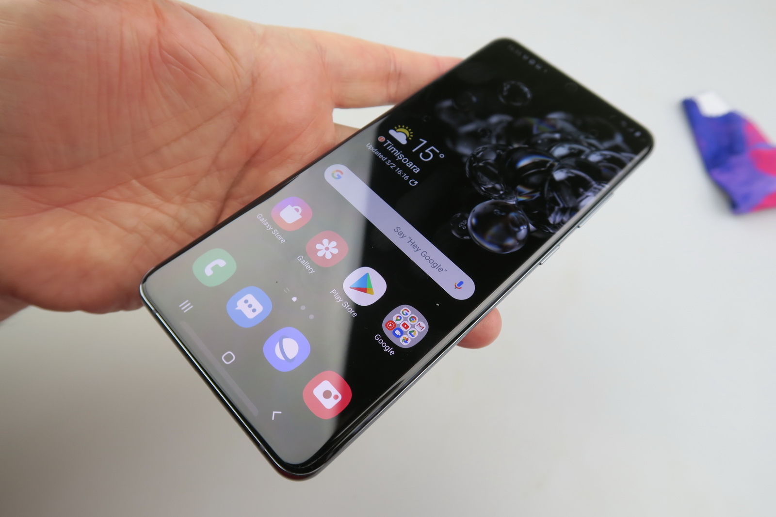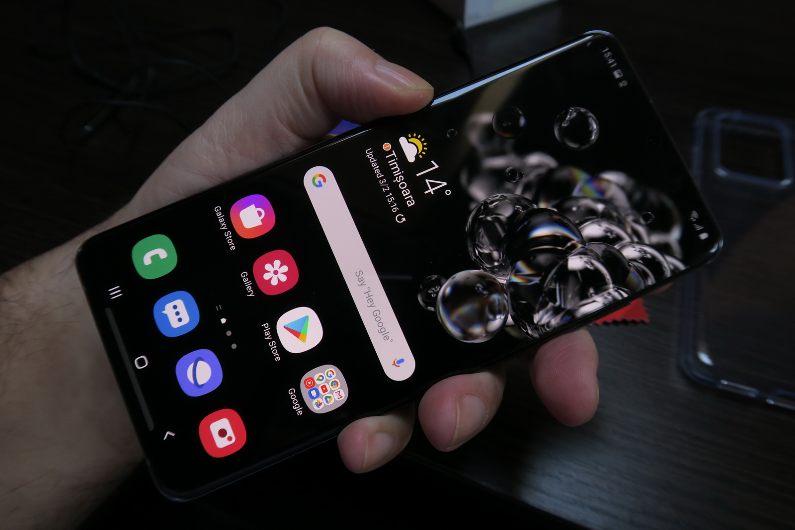 Samsung Galaxy S20 Ultra 5G poate suna uriaş pe hârtie, când auzi că are o diagonală de 6.9 inch. Asta în condiţiile în care la 7 inch vorbim deja de o tabletă... Totuşi Samsung a reuşit să taie aşa mult din muchiile ecranului, încă utilizarea rămâne comodă si terminalul nu e uriaș.. Ajută şi formatul îngust al acestui device, care îl face uşor de apucat cu toate degetele. Personal mi s-a părut mai comod de folosit zilnic decât Galaxy Note 10+ sau iPhone 11 Pro Max.