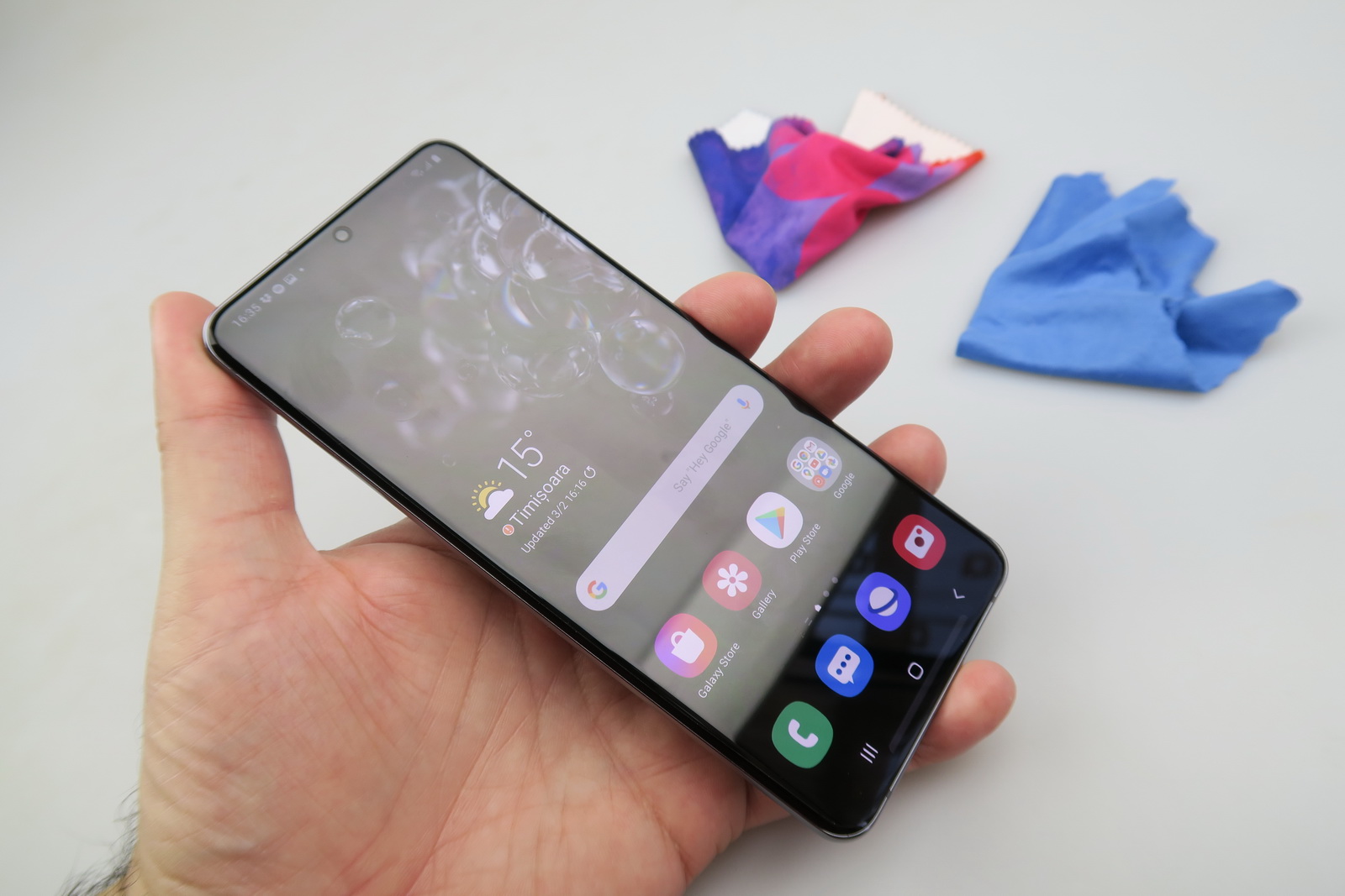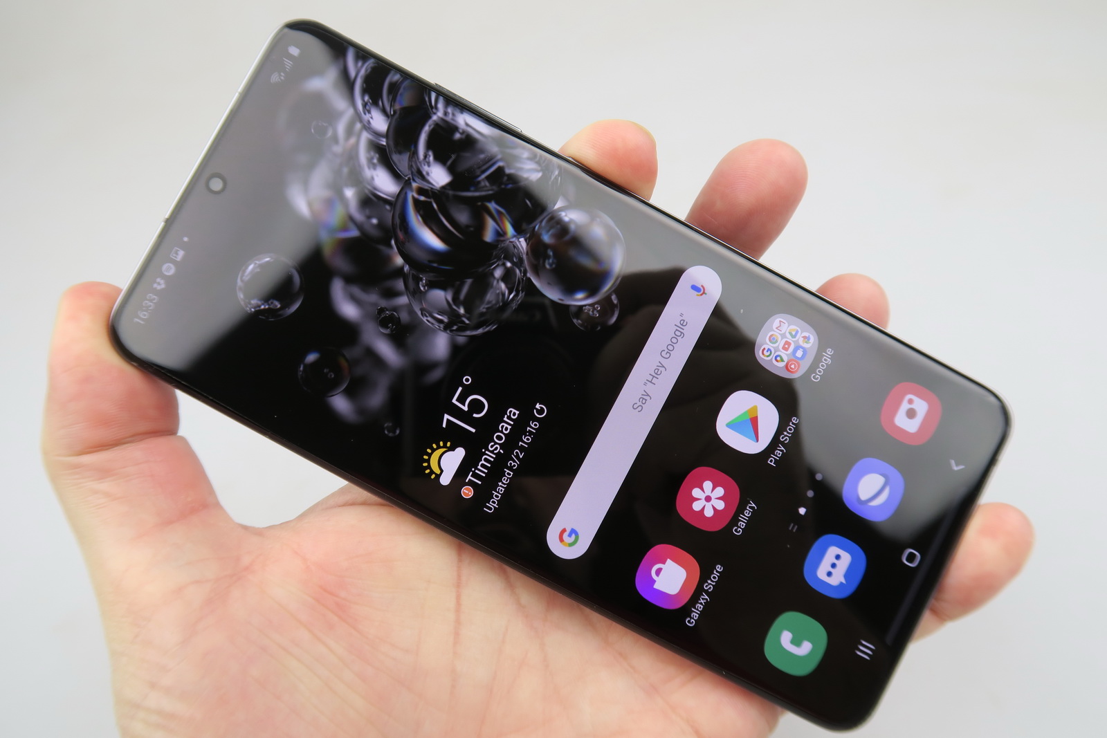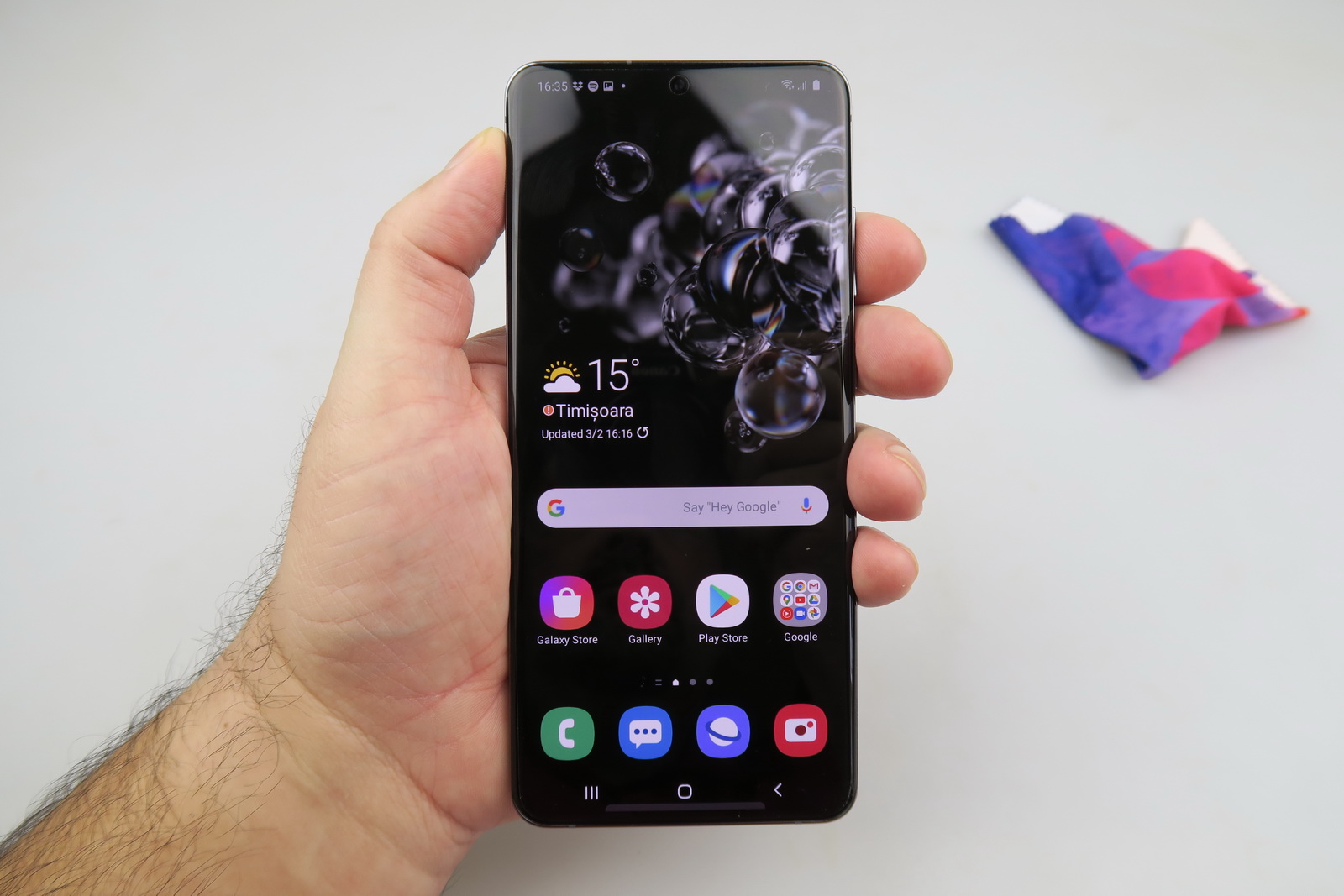 Samsung Galaxy S20 Ultra 5G poate suna uriaş pe hârtie, când auzi că are o diagonală de 6.9 inch. Asta în condiţiile în care la 7 inch vorbim deja de o tabletă... Totuşi Samsung a reuşit să taie aşa mult din muchiile ecranului, încă utilizarea rămâne comodă si terminalul nu e uriaș.. Ajută şi formatul îngust al acestui device, care îl face uşor de apucat cu toate degetele. Personal mi s-a părut mai comod de folosit zilnic decât Galaxy Note 10+ sau iPhone 11 Pro Max.