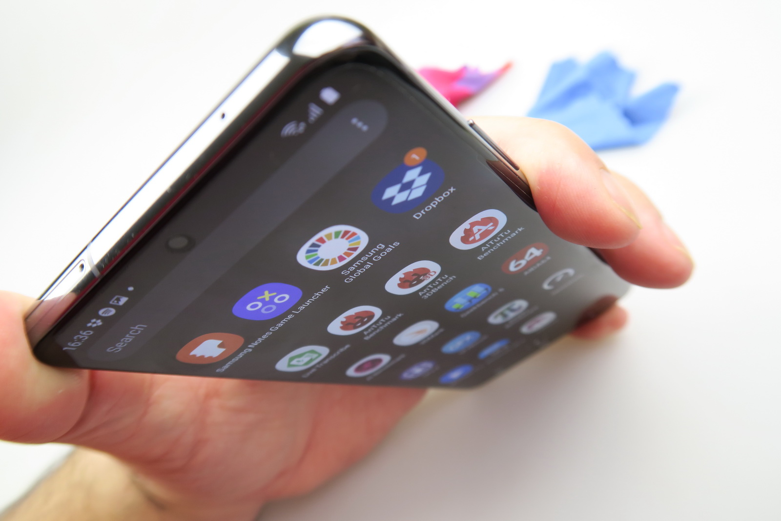 Ecranul este mult mai plat decât la predecesorii săi, Samsung renunţând la curbe inutile. Am pus ecranul la microscop şi am descoperit aranjament de pixeli Pentile Matrix, iar apoi a venit testul cu luxmetrul, unde am ajuns la 406 LUX, depăşind deci granița pusă de noi de 400 LUX. Atenţie, la soare cu Adaptive Brightness e capabil şi să meargă mult mai sus de atât, cu multe sute de LUX peste. Testul cu luxmetrul nu e foarte relevant în acest caz, telefonul ne urcând în stratosferă în ierarhia noastră, aşa cum vedeţi, dar livrând la utilizarea de zi cu zi.