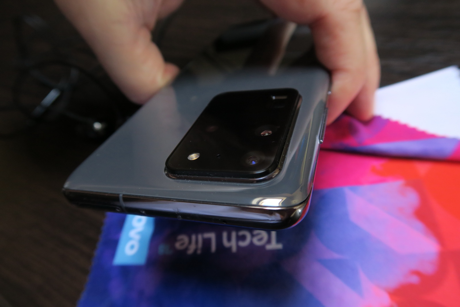 Telefonul este fabricat din sticlă şi metal şi vine pe negru şi argintiu (Cosmic Grey și Cosmic Black), nuanţe sobre. Mi-aş fi dorit şi alte variante de culoare, dar ele ar putea apărea pe parcursul anului. Remarc că negrul camuflează binişor protuberanta camerei din spate. Chiar dacă şi-a atras meme-uri cu plite electrice, aceasta îi da personalitate şi opulenta smartphone-ului. Nu o să fie confundat cu alt model într-o încăpere cu iPhone-uri şi Huawei-uri. Iar oricine va mai adopta o cameră de gen, risca să fie numit copycat.