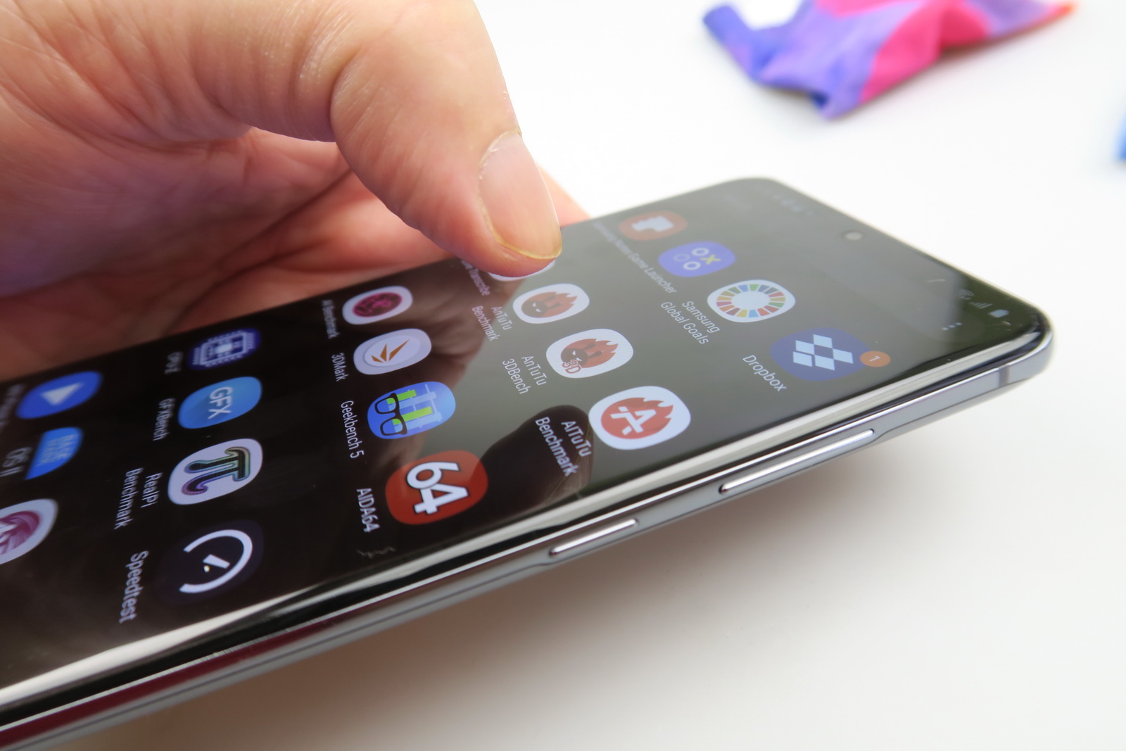 Samsung Galaxy S20 Ultra 5G dispune de un ecran foarte generos, de 6.9 inch. Este un Dynamic AMOLED cu rezoluţie de 3200 x 1440 pixeli, cu aspect 20:9 şi suport HDR10+. Are şi suport pentru refresh rate de 120 Hz, dar şi touch sensing la 240 Hz, pentru un input fără lag. Vine cu protecţie Gorilla Glass 6 şi are muchiile tăiate până la extrem, pentru o imersivitate mai bună în jocuri şi filme.