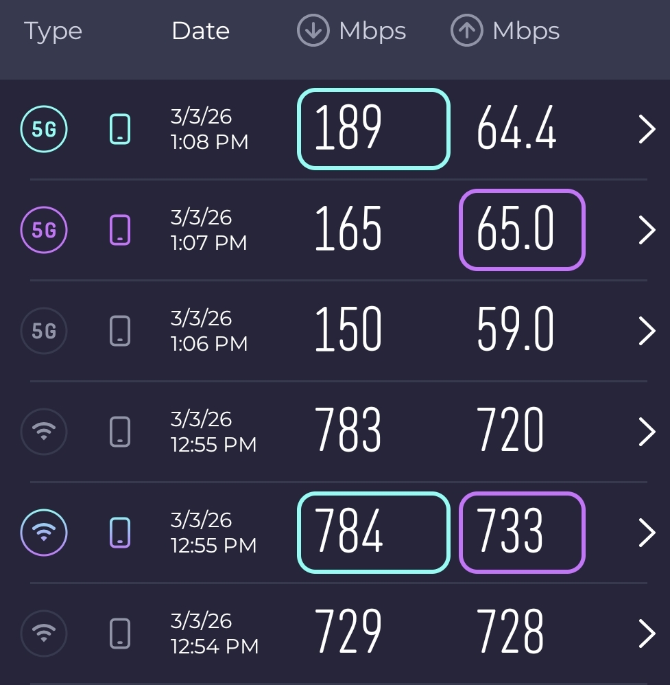Pe WiFi 7 cu DIGI 1 Gbps am prins 784 Mbps download și 733 Mbps upload.