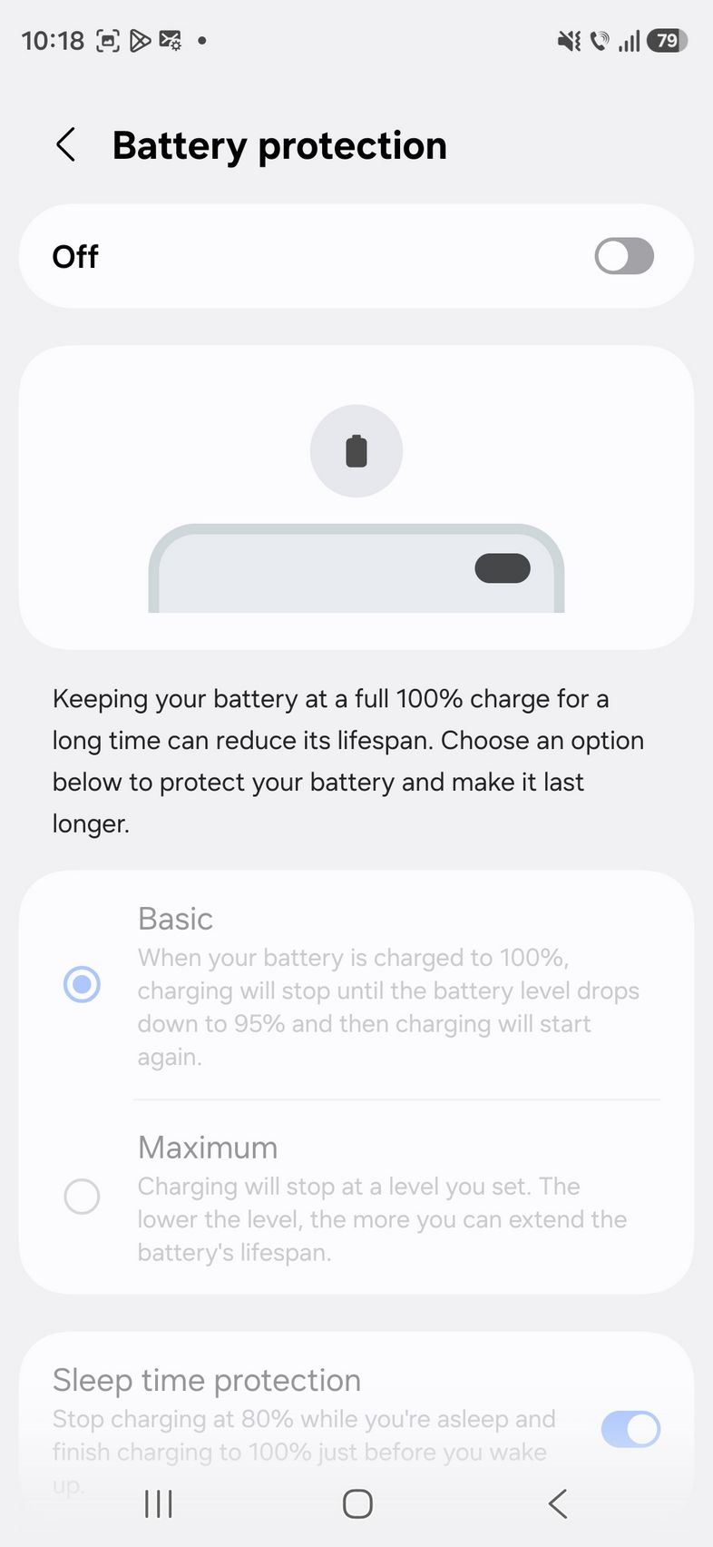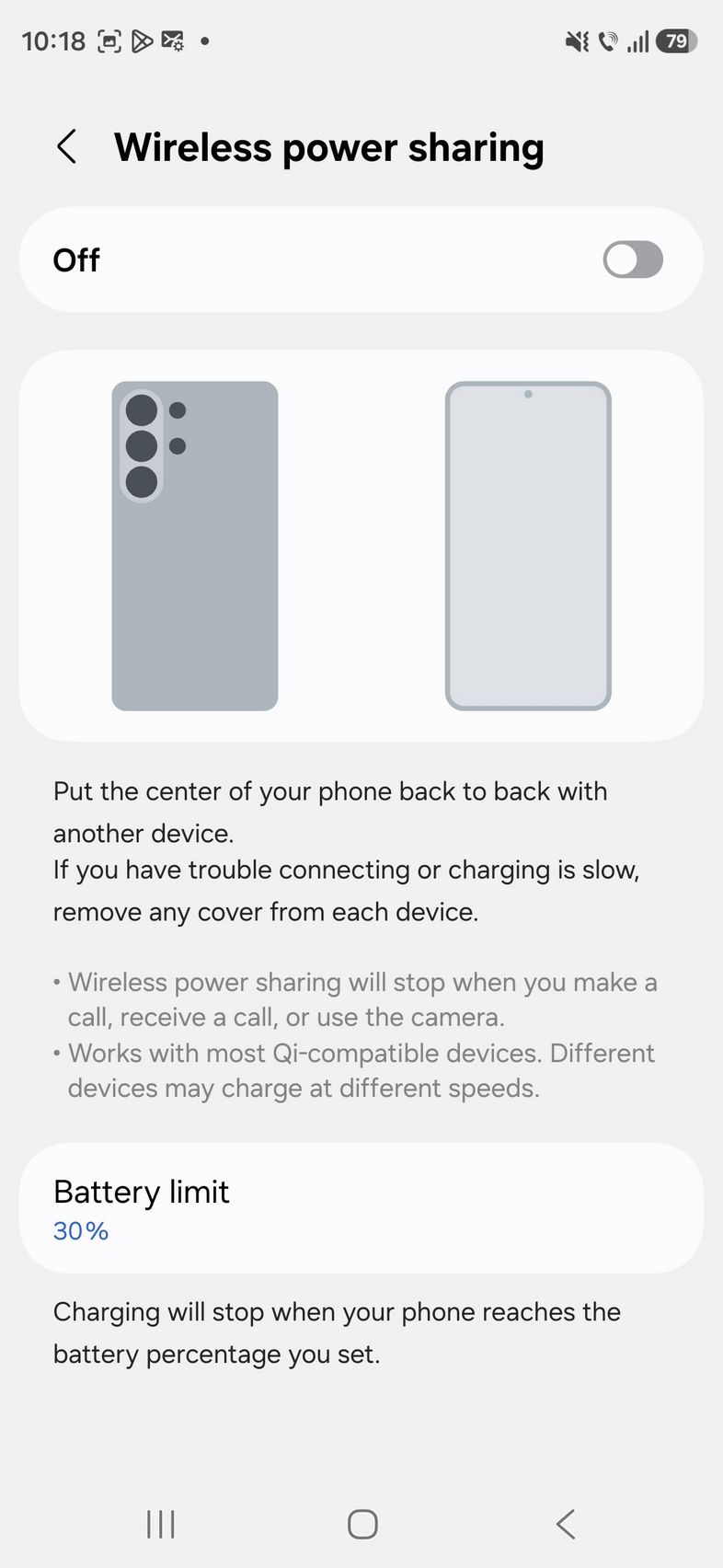 În setări e clasicul grafic de utilizare, mod Power Saving. Avem și încărcare wireless la 25W, încărcare wireless inversă la 4.5W plus opțiuni de protecție Basic (oprire alimentare la uitarea în priză) sau Maximum unde alegi până la ce nivel să încarci bateria (80, 85, 90 sau 95%).