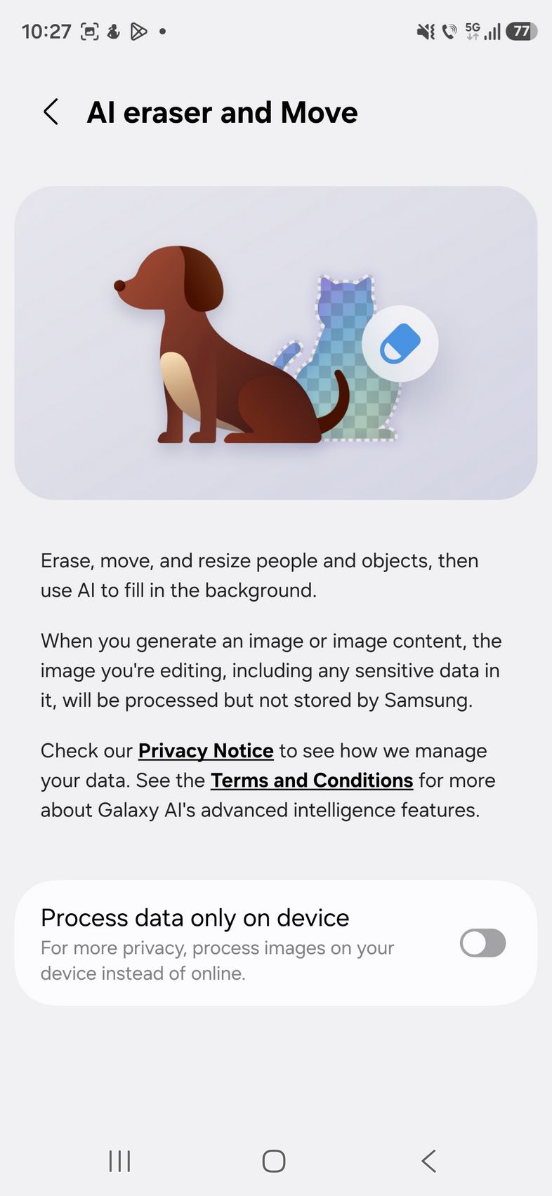 Are și Audio Eraser care funcționează acum și în aplicații 3rd party, iar la editare foto mai există și AI Eraser pentru ștergere de elemente din poze, plus Move prin care poți muta anumite obiecte dintr-un loc în altul în poză.