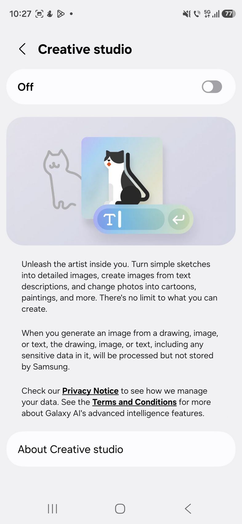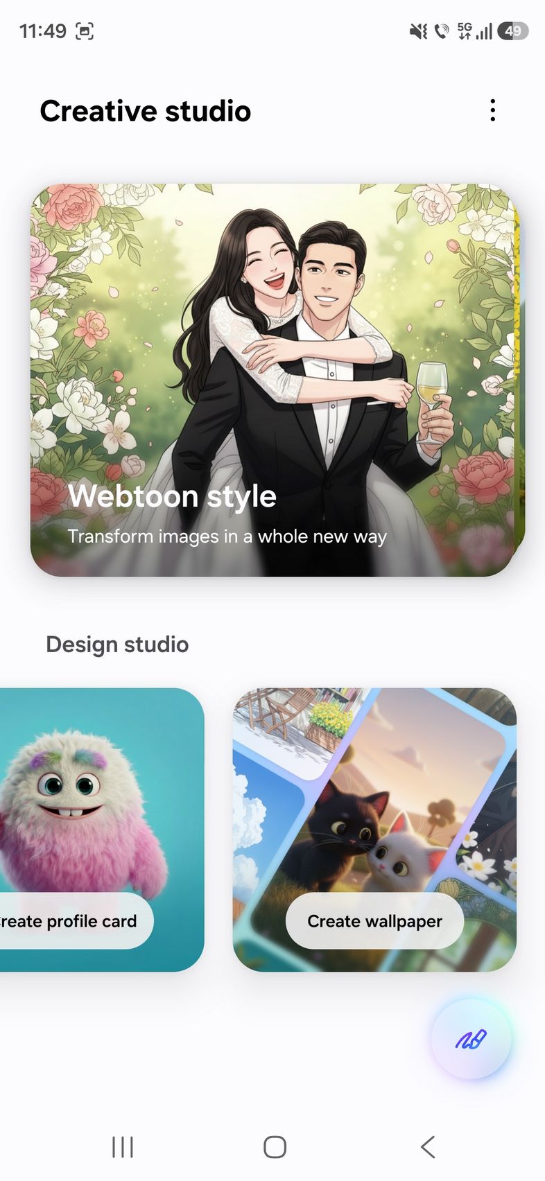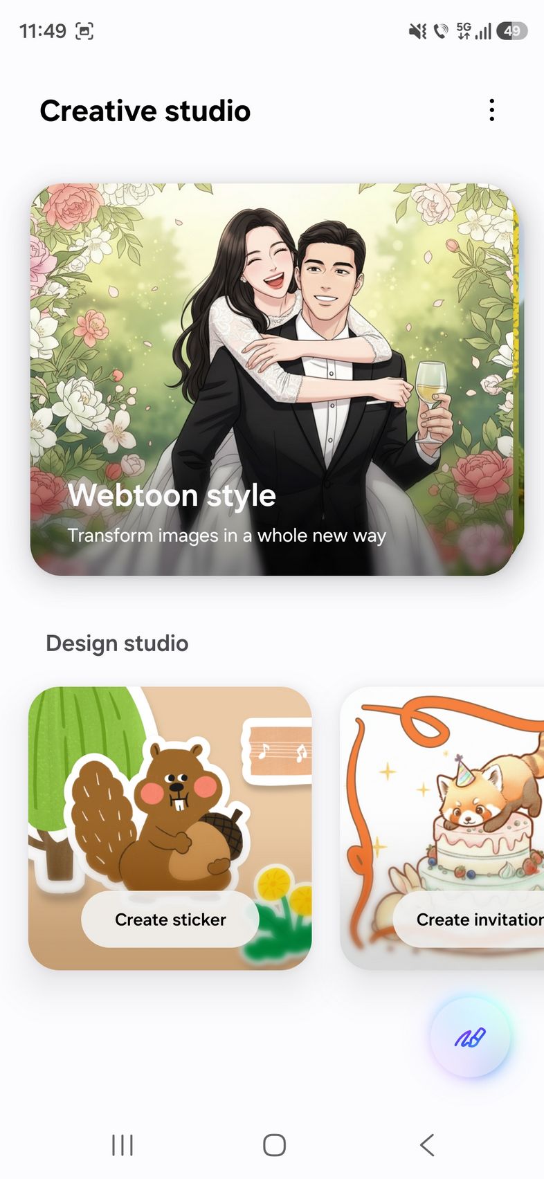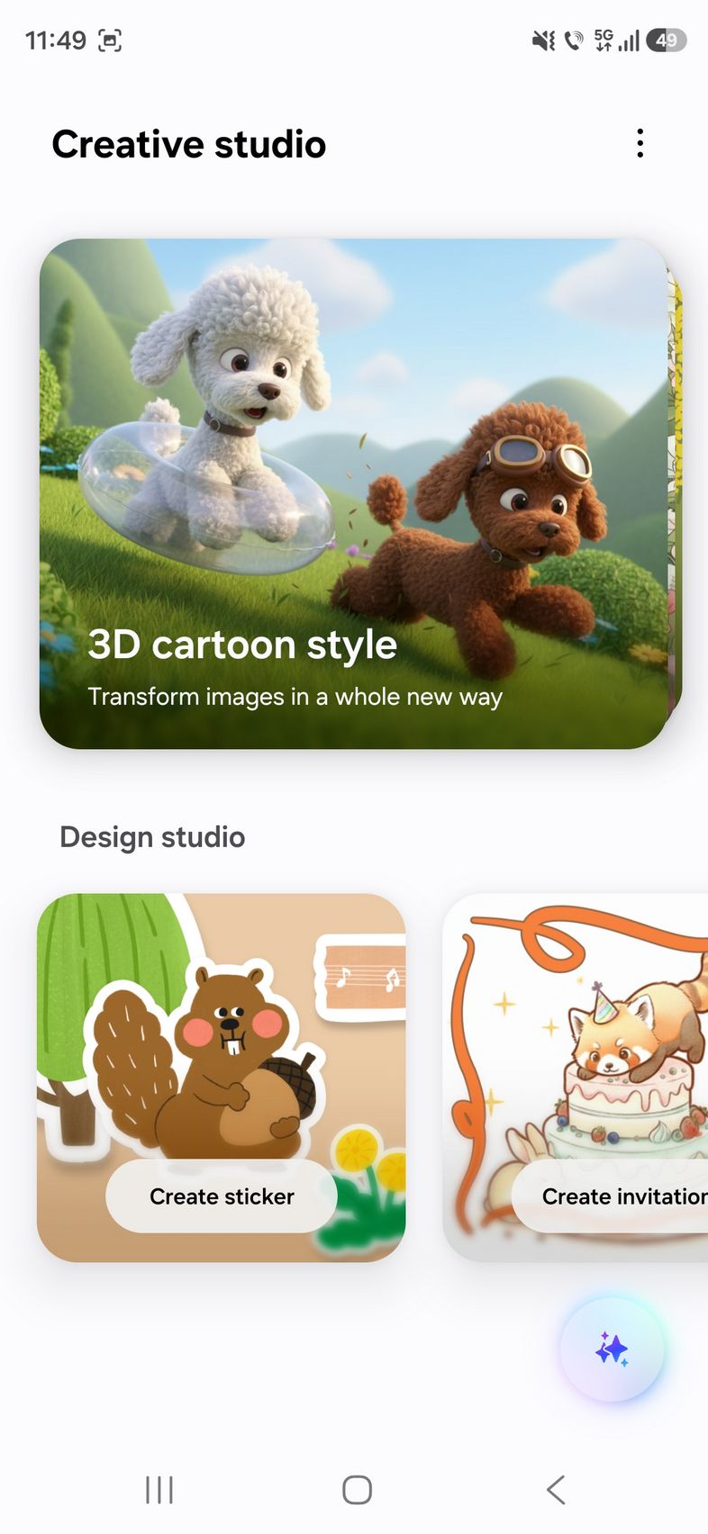 Am mai găsit noutăți și în Creative Studio unde e mai ușor să creezi stickere, wallpapers sau invitații la zile de naștere, doar prin comandă text.