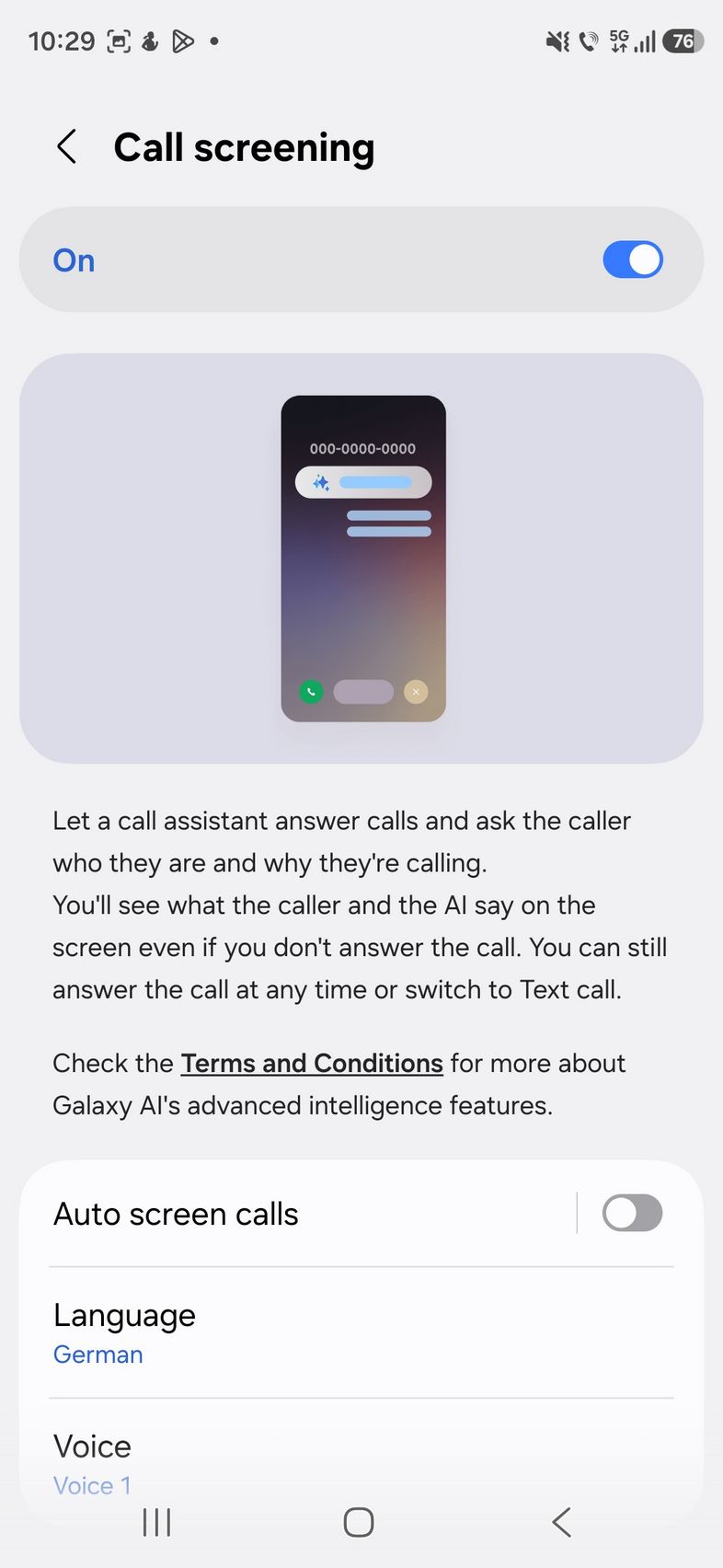 Suita de funcții Galaxy AI se îmbogățește și printre noutățile găsite se află și Call Screening prin care asistentul de pe telefon va răspunde la apelurile venite de la numere necunoscute și îi va întreba care este scopul apelului, asta în lupta anti-spam. Din păcate limba română nu este disponibilă. Am mai descoperit și deja existentele: