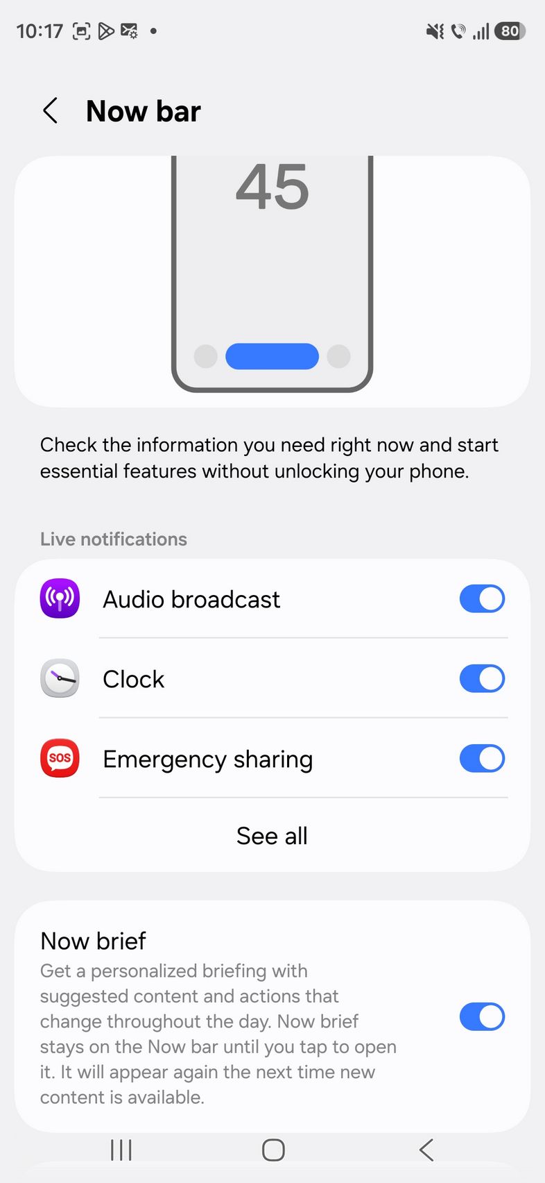 Now Brief rămâne la posturi și văd că apare și o opțiune Audio Brief cu citirea rezumatului zilnic cu voce tare. O noutate este totuși Now Nudge care trece peste simpla livrare de sugestii. Dacă ești într-un chat în care se vorbește despre o ieșire în oraș și ba te uiți prin galerie la locuri în care să mergeți, ba prin browser sau calendar, aici intervine Now Nudge care vrea să elimine acest frecuș.
