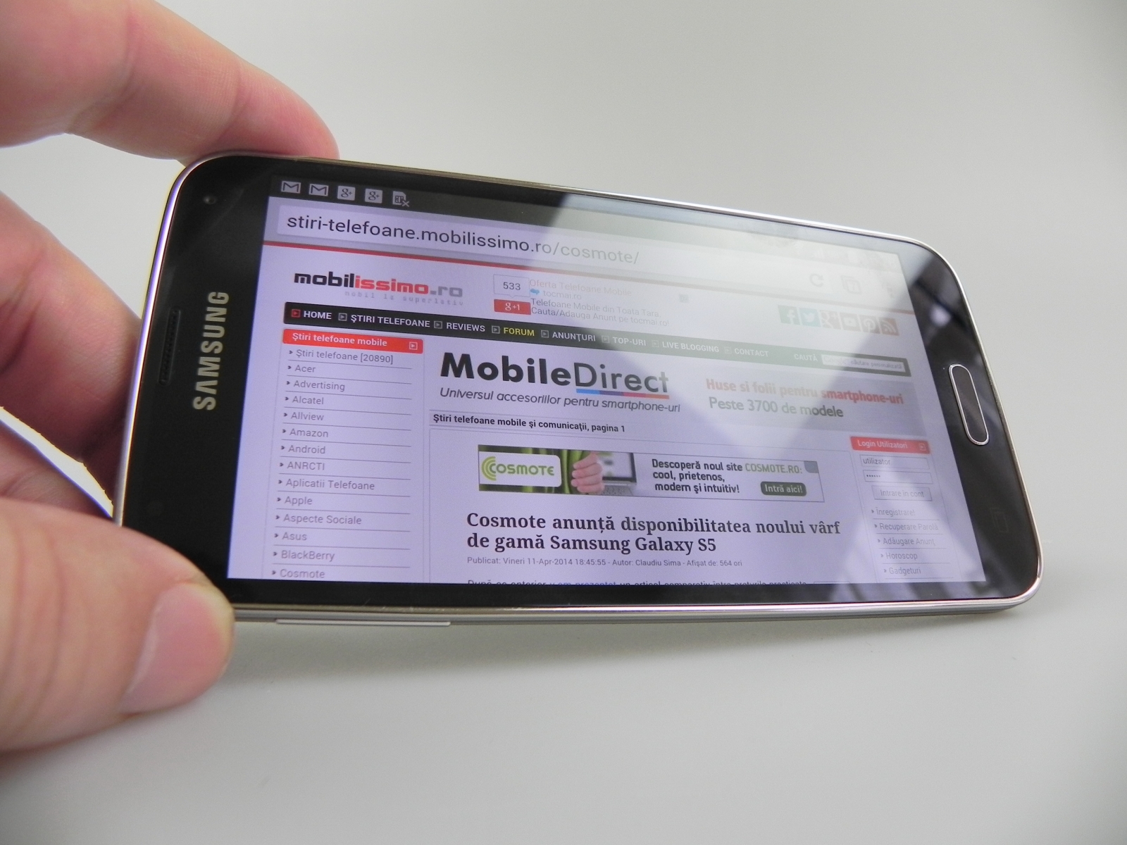 Samsung Galaxy S5 este telefonul care e pe buzele tuturor în aceste zile, el fiind lansat pe 11 aprilie în magazinele din România și având și vânzări foarte bune la nivel internațional. Produsul a fost anunțat la MWC 2014 și a fost vândut în prima sa zi cu până la 100% mai multe unități decât în cazul lui Galaxy S4. Noi am primit produsul în teste în varianta finală de la Cosmote România, care îl vinde la prețul de 3149 lei fără abonament, sau 1198 lei cu abonament Cosmote Free XL.