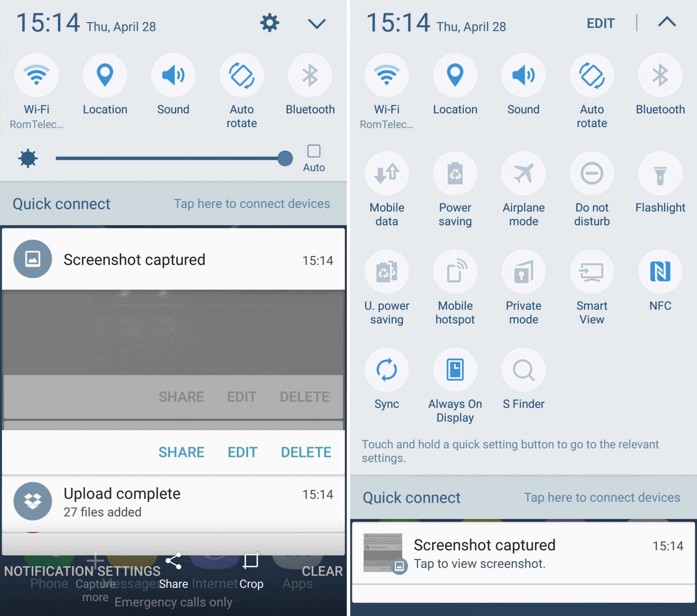 Zona dropdown are acum fundal alb şi include Quick Settings şi notificări, iar trecând la zona de Setări, aici se află Smart Manager, care administrează memoria şi securitatea şi face curat în cache printre altele, dar şi funcţia Do Not Disturb. Cea mai interesantă zona din Setări e totuşi Advanced Features. Aici regăsim opţiunile legate de Game Launcher, o noutate de la Samsung, funcţie oferită pe Galaxy S7 şi S7 Edge.