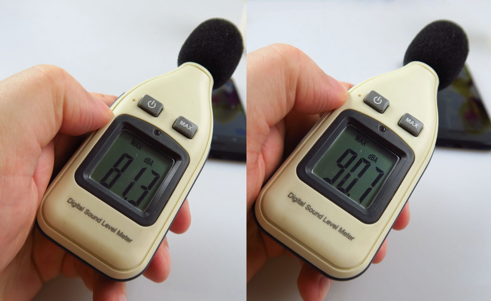 Difuzorul din partea dreaptă e cel care oferă output, grila stângă fiind doar de decor. Nu avem căşti la pachet, dar primim radio FM. A urmat şi testul cu decibelmetrul pentru a ne clarifică dacă avem un winner sau un loser aici. Am atins 90.7 dBA atunci când am jucat Riptide GP Renegade şi 81.3 dBA cu sample-ul nostru acustic standard. Rezultatul cel mare e luat în calcul de noi aici, el depăşind pe cel atins de iPhone 7, dar fiind şi sub cel al lui LeEco Le Max 2.