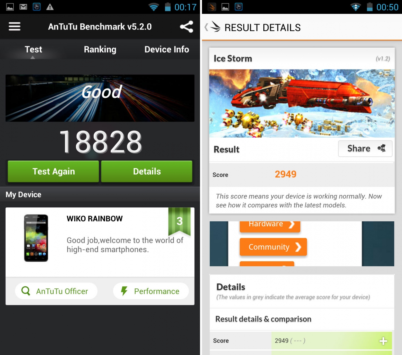 | AnTuTu | 18828 | 17340 | 17215 | 13112 |