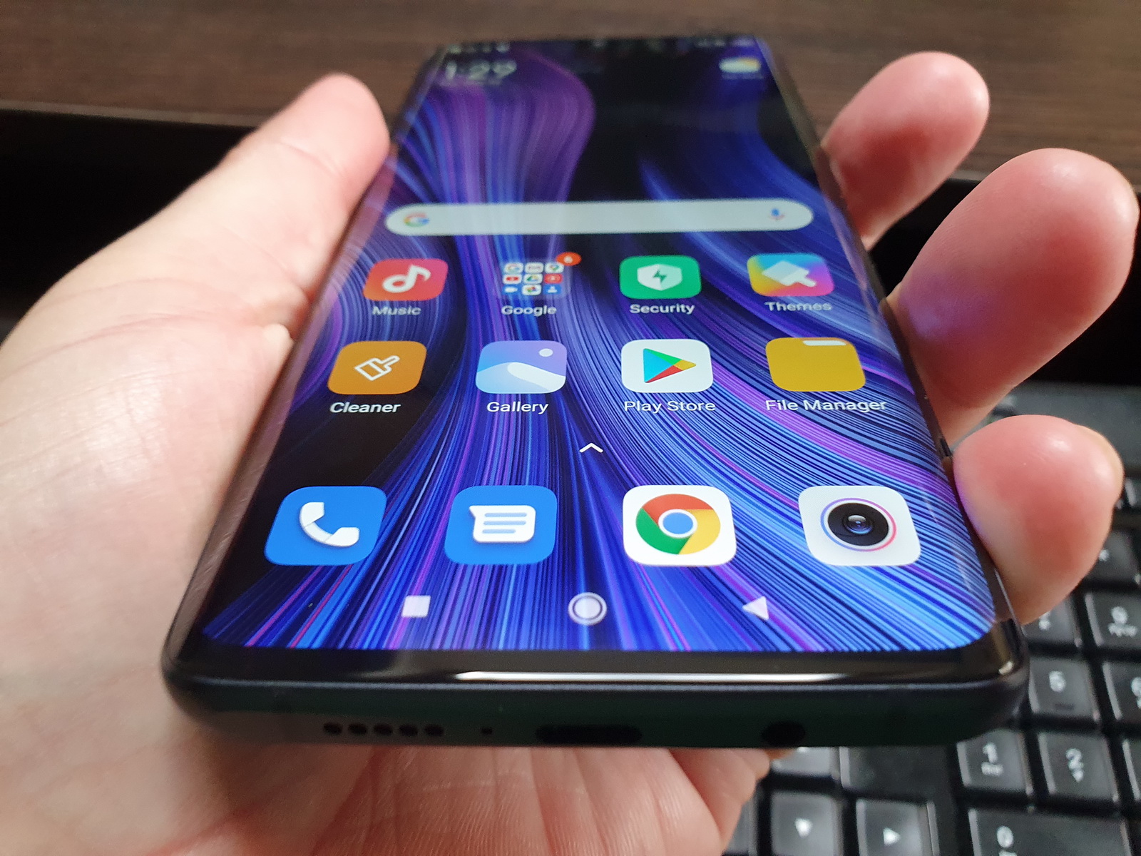 E totuşi lat şi lung, aşa că utilizare cu o singură mână o să fie grea, dacă nu ai o mână mare. Acesta este un smartphone fabricat din sticlă şi metal, cu panouri din sticlă curbate pe margini în faţă şi spate şi o ramă metalică solidă între ele. Camera nu mai iese în relief că la Mi Note 10, iar aderenta e destul de OK la câtă sticlă avem aici. Butoanele răspund bine la apăsări, iar spatele atrage multe amprente şi grăsime. E un telefon destul de arătos şi bine protejat de zgârieturi, cu Gorilla Glass 5 în faţă şi spate.