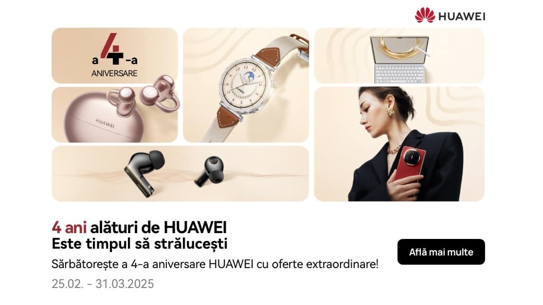 În căutare de reduceri la început de săptămână! Nimic mai mult! HUAWEI Store aniversează 4 ani și pentru tine reprezintă ocazia ideală să te echipezi cu toată tehnologia de care ai nevoie, profitând de extra reduceri. Nu doar discount-uri extra sunt pe listă, ci și cadouri speciale plus garanție extinsă de 12 luni pentru fiecare produs inclus în campanie. Avem mai multe detalii în rândurile următoare.