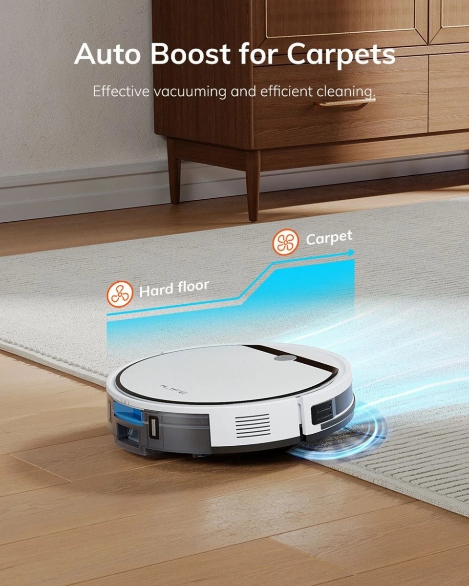ILIFE V3X are giroscop pentru poziționare și planificare smart, astfel că avem parte de o curățenie mai eficientă. Cât despre autonomie, bateria de 2900 mAh de la interior livrează până la 2 ore autonomie. Există și o aplicație dedicată cu suport Alexa și Google Home.