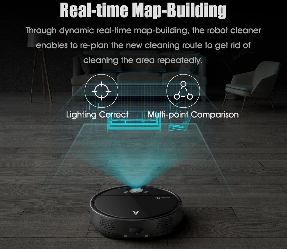 Aspiratorul de față dispune de sistemul VSLAM Vision, algorgitm inteligent care poate selecta în mod automat multiple traseul ideal de urmat pentru a finaliza eficient sarcina de curățare de la interiorul casei. Acesta oferă putere de aspirație de 2600Pa și 4 viteze/ajustări pentru eficiență în orice condiții. De asemenea, avem 3 moduri de curățare: aspirare, aspirare + mop, sau doar mop.