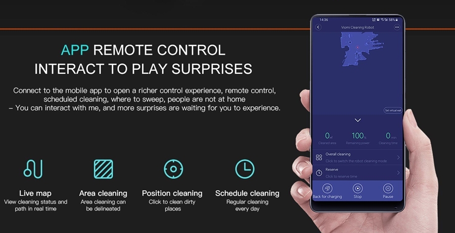 Aspiratorul are o putere de aspirare de 2100Pa și oferă 3 moduri de curățare: aspirare, mop sau aspirare + mop. Dispune de un sistem de navigare laser LSD pentru scanare rapidă și localizare precisă pentru a curăța camera în care se află cât mai eficient posibil. Din aplicația dedicată pentru mobil se pot crea programe de curățare, restricționa zonele de curățare și controla alte aspecte.