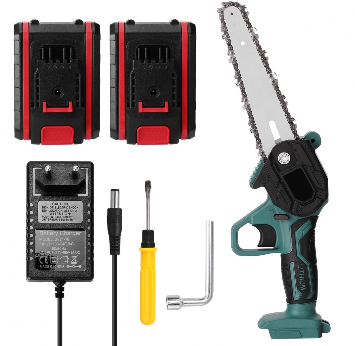 Conform producătorului, lanțul inclus aici este robust, are dinți ascuțiți și este foarte rezistent la uzură. Asigură o tăiere lină, o eficiență ridicată și livrează un zgomot redus în timpul utilizării. Pe lângă fierăstrău și cei doi acumulatori, veți găsi în cutie și un alimentator, dar și o șurubelniță și o mică ustensilă pentru montarea și reglarea aparatului. El poate fi folosit chiar și pentru mici lucrări de bricolaj în gospodărie.