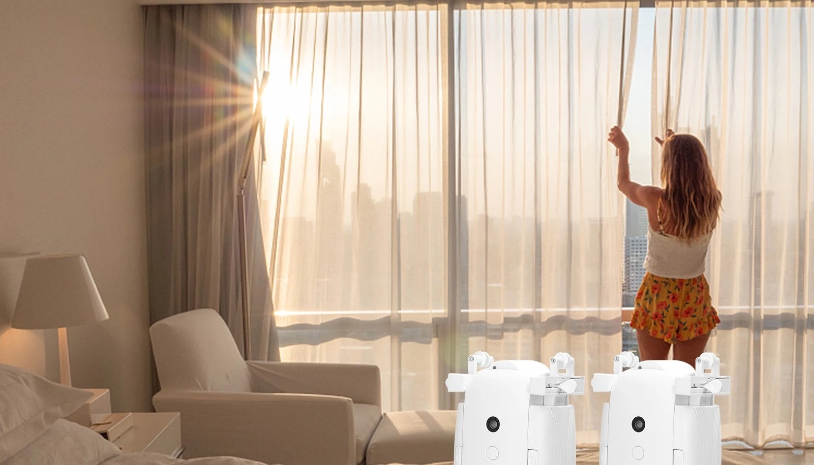 Vorbim aici despre motoare pentru draperii sau perdele, modele 3 în 1, ideale pentru instalare în apartament, fără fire și fără complexitate la mijloc. Au baterie de 4000 mAh la interior care livrează până la 6 luni autonomie și primim telecomandă la pachet prin care putem deschide/trage draperiile în funcție e preferințe.