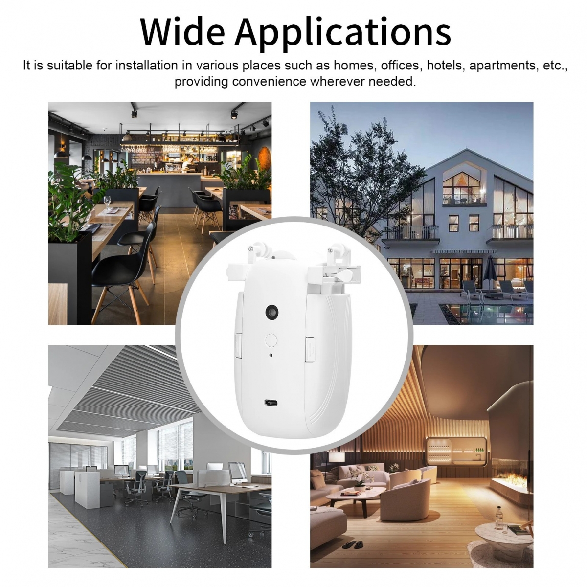 Apare și un trigger manual, astfel că la o ușoară tragere în jos a draperiei, aceasta se va deschide/trage automat. Oferă compatibilitate pentru tije/șine I-Rail, U-rail sau Roman Rod. Are cuplu de 10-12 kg, interfață de alimentare USB Type-C și avem la pachet toate accesoriile necesare, inclusiv adaptor pentru diferite tipuri de tije.