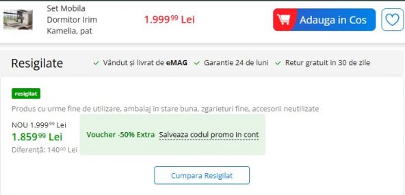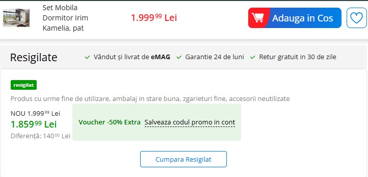 - eMAG, cupon până la -50%: „RESIGILAT” (reducere pentru produse resigilate, la comenzi de minim 100 de lei)