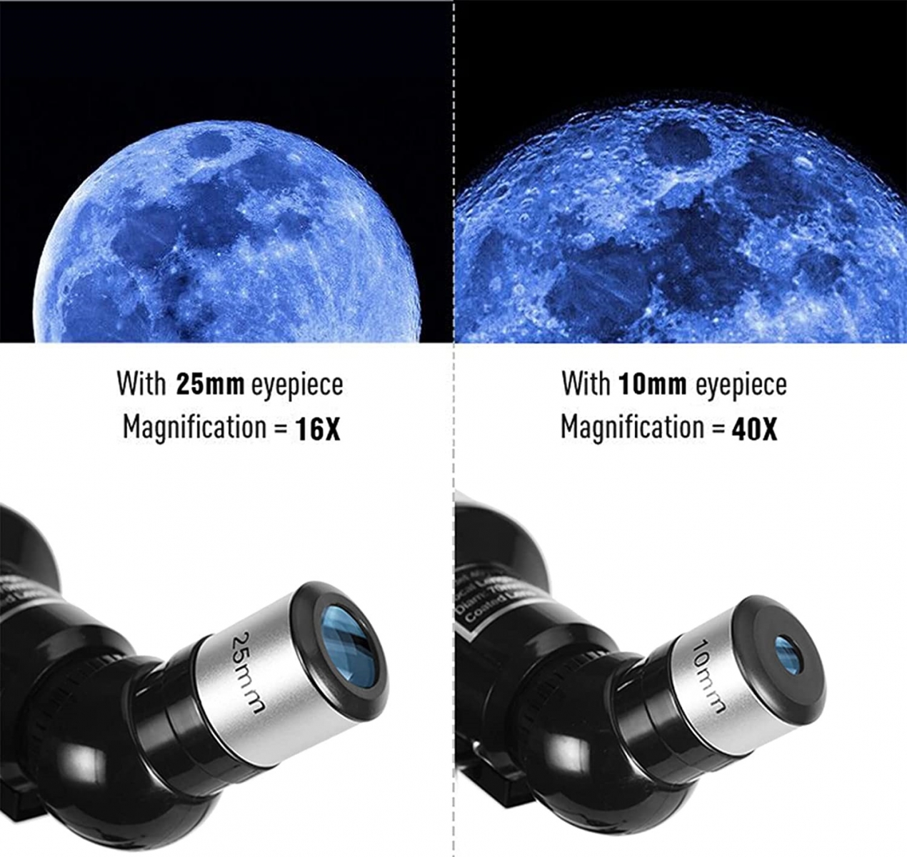 Printre accesorii vei regăsi un obiectiv de 10mm, unul de 25mm, dar și o geantă pentru a transporta telescopul oriunde, facil. Poate fi ajustat între 40 și 125 de centimetri pe înălțime, fiind potrivit atât pentru copii, cât și pentru adulți.