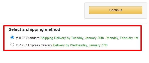 Apoi, puteți adăuga produsul dorit în coș și veți fi îndrumați spre a vă completa adresa de livrare. Eu am adăugat în coș suportul ZenCT pe alb, care costă 47.95 euro. După cum vedeți în imagine, avem două metode de livrare: Standard și Express. În acest caz, suportul ar ajunge la prețul de 56.03 euro cu transport Standard sau 71.52 euro cu transport Express.
