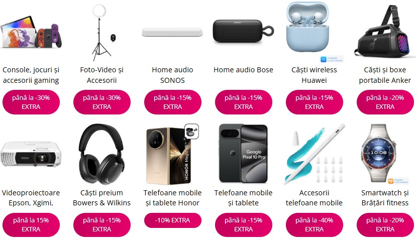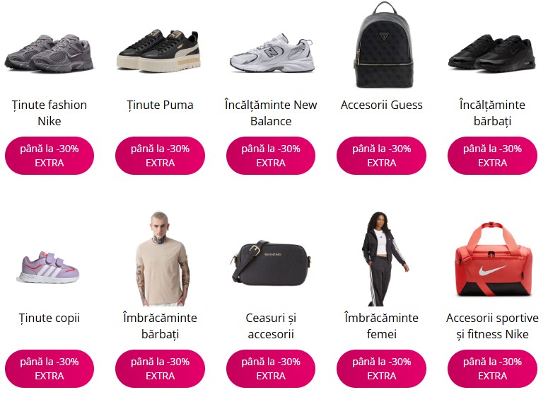 Campania acoperă însă mult mai multe segmente decât zona electro-IT. În categoria fashion și articole sportive, reducerile pot ajunge la 30% extra pentru branduri precum Nike, Puma, New Balance sau Guess. Produsele sportive de la adidas și diverse accesorii fitness intră, de asemenea, în promoție, iar anumite articole sportive pot ajunge chiar la 50% reducere suplimentară.