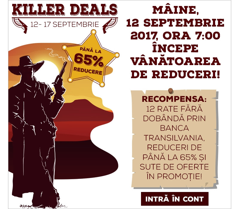 Retailerul mai oferă şi 12 rate fără dobânda prin Banca Transilvania şi promite că sute de produse vor beneficia de discount. Nu avem încă detalii despre ce telefoane, tablete sau televizoare este vorba, dar uitându-mă la ultima campanie, cea Back to Office, am observat că au tăiat serios din preţurile telefoanelor accesibile, precum cele din gama Galaxy J, Nokia 3, Xiaomi Redmi-uri, dar si eBook Readere şi car kit-uri.