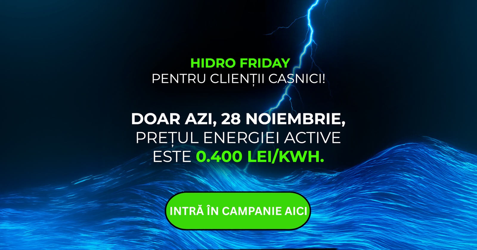 Într-o mișcare destul de neobișnuită pentru piața locală de energie, Hidroelectrica a lansat astăzi o campanie flash valabilă exclusiv în ziua de 28 noiembrie 2025, sub numele Hidro Friday. Vorbim despre un tarif preferențial de 0,40 lei/kWh (fără TVA) pentru energia activă, aplicabil doar clienților casnici care semnează online un contract de furnizare cu compania, dar sunt niște condiții clare și destul de stricte. Detalii avem mai jos!