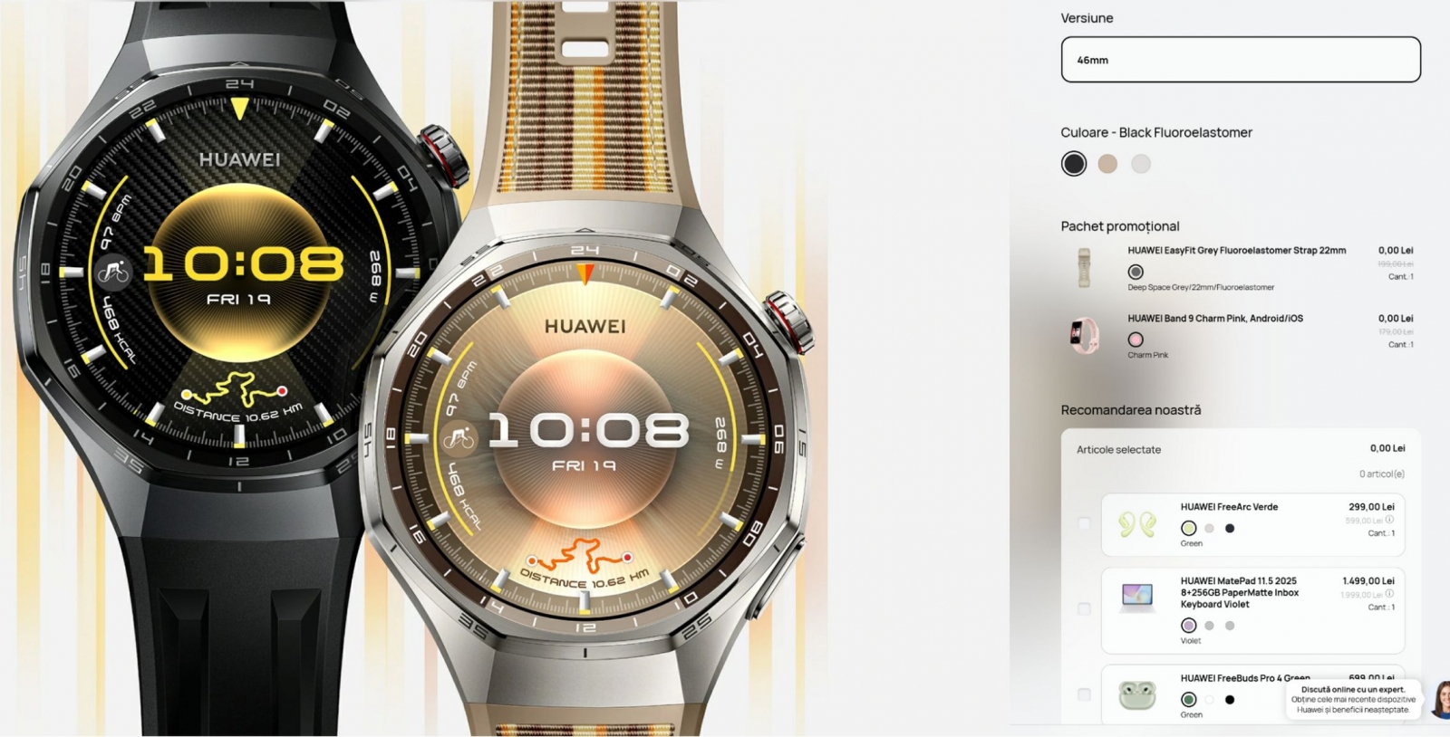 - Pentru iubitorii de fitness: Huawei Watch GT 6 Pro/GT 6 46mm + Bundle: Freearc