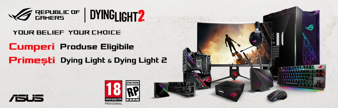 La fiecare achiziţie de plăci de bază, monitoare, periferice şi alte produse ASUS de la evoMAG.ro, veţi primi gratuit jocurile Dying Light 1 şi 2. Aveţi 5 pagini de produse eligibile, inclusiv routere high end, dar şi carcase şi surse. Sunt şi monitoare la preţ bun ca acesta la 1408 lei şi e prima oară când văd timp de răspuns 0.5 ms şi nu 1 ms.