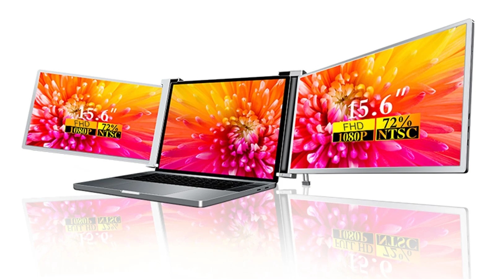 Ideea de a extinde spațiul de lucru folosind un extra monitor nu este nouă, iar acum există asemenea soluții și pentru laptop-uri, precum acest setup găsit astăzi la ofertă pe Cafago. Îți adaugă două display-uri în extremitățile laptop-ului tău, având un suport dedicat cu kickstand, iar mai multe detalii, inclusiv prețul, avem mai jos.