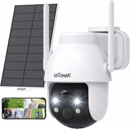 5. ieGeek ZY-C2 – Cameră 2K 3MP cu pan/tilt 360°, încărcare solară și viziune nocturnă color