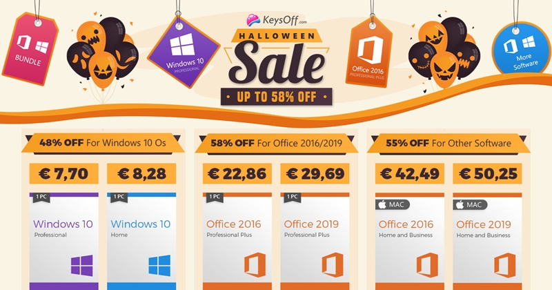 Sărbătoarea de Halloween nu aduce doar dulciuri celor care merg la colindat, ci și reduceri speciale. Dacă tocmai ce ți-au achiziționat un laptop sau PC nou și ai nevoie și de o licență Windows 10, află că site-ul Keysoff.com vine în această perioadă cu reduceri atractive, cu prețuri ce pornesc de la doar 5.8 euro per licență. Ce ne rezervă retailerul aflați din rândurile de mai jos.