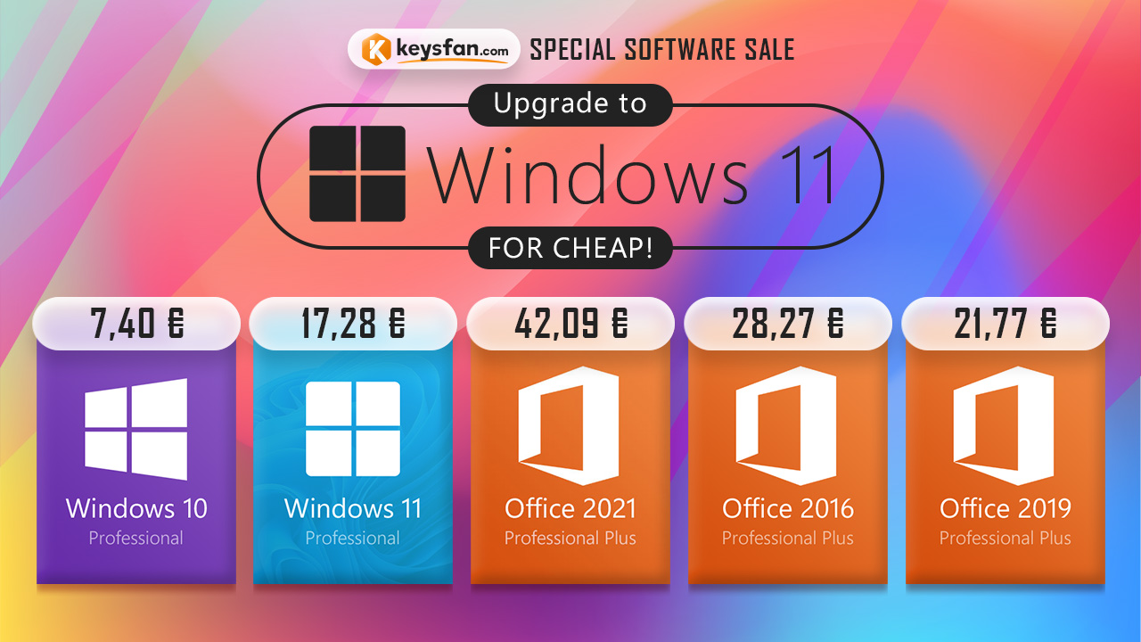 - Windows 10 Pro + Office 2021 Professional Plus: 46.80 euro