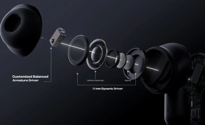 - Drivere duale hibride – înalte clare prin armatură echilibrată + bass puternic prin driver dinamic de 10,2 mm