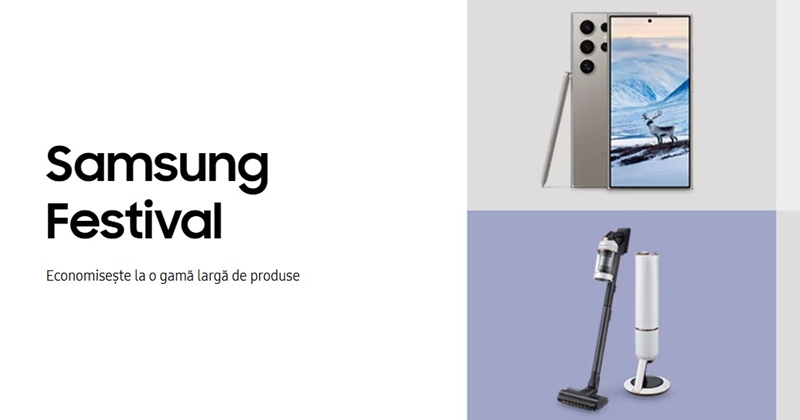 Astăzi a început Samsung Festival, cu discounturi și beneficii la o gamă largă de produse până pe 15 ianuarie 2025. Oferta acoperă telefoane, tablete, wearables, televizoare și electrocasnice, iar reducerile se aplică exclusiv pe Samsung.com.