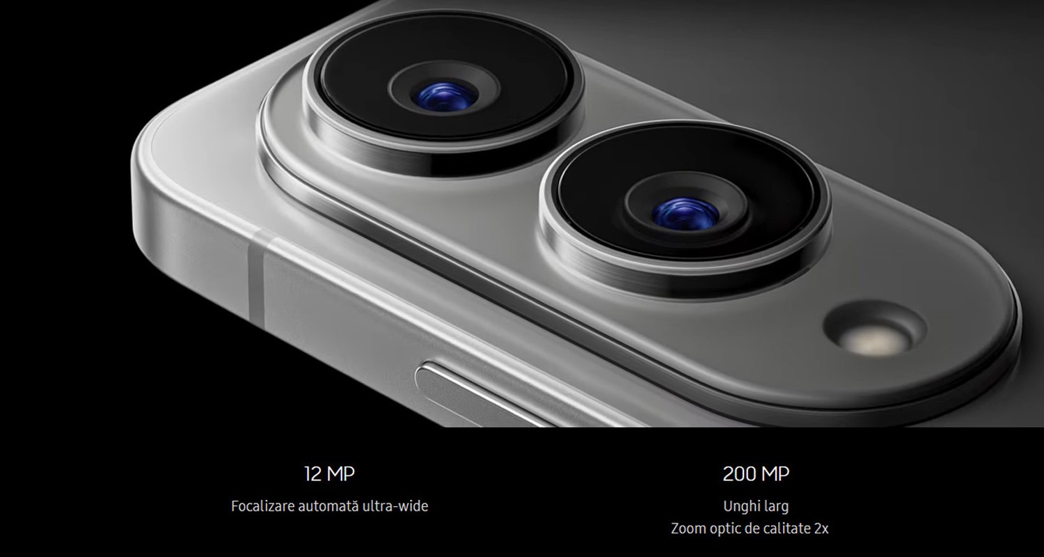 Samsung nu s-a zgârcit nici la partea foto. S25 Edge vine cu o cameră principală de 200 MP, asistată de un senzor ultra-wide de 12 MP. Procesarea este susținută de un engine AI numit ProVisual, care se ocupă de recunoaștere facială, optimizarea luminii și zoom inteligent.