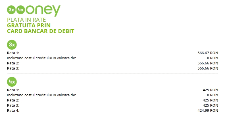 Conform platformei Compari.ro, alți retaileri îl comercializează la prețuri cuprinse între 1745 și 2.285 lei. Flanco îl listează astăzi la un preț de doar 1.699.99 lei. Beneficiați și de un voucher în valoare de 200 de lei la predarea unui televizor vechi, întrucât produsul se află în Programul Rabla. Nu putem uita nici de sistemul de achiziție în 3 sau 4 rate fără dobândă direct cu cardul de debit, proaspăt implementat (detalii aici). Samsung UE50TU7072 poate fi astfel achiziționat la doar 566 lei/lună (în 3 rate) sau 425 lei/lună (în 4 rate).