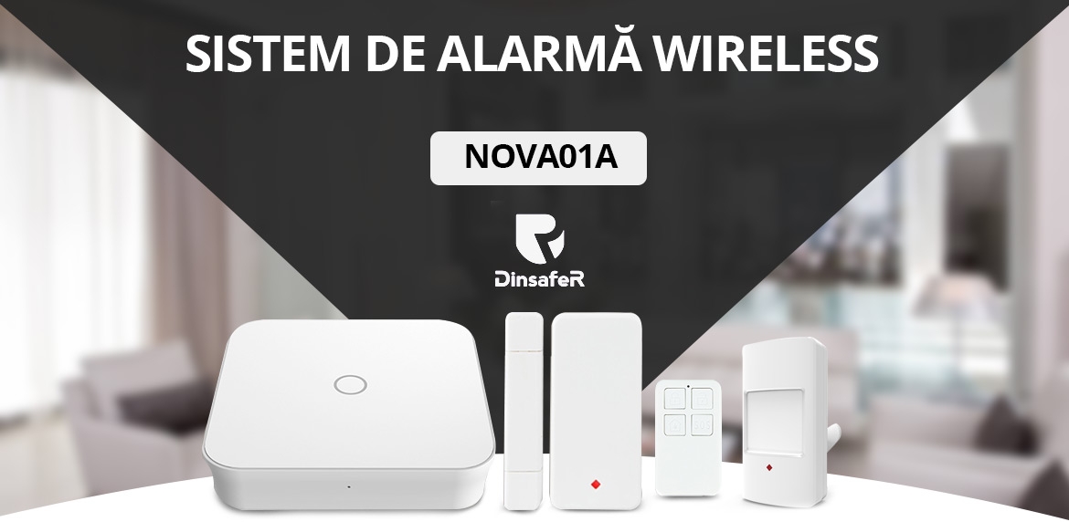 Ultimul sistem de alarmă wireless ce primește reducere pe Spy-Shop astăzi este modelul DinsafeR NOVA01A ideal pentru spații rezistențiale și totodată compact. Include hub-ul NOVA, 1x detector de mișcare DHW02O, 1x contact magnetic DMC01O și o telecomandă. Acest sistem suportă rețele LAN, Wi-Fi și acoperă până la 200 m în câmp deschis. Avem o sirenă puternică de 100 dB și aflăm că sunt suportate aici numeroase accesorii wireless de la DinsafeR precum tastaturi, telecomenzi, senzori, detectori, sirene, accesorii smart (camere IP, bec, priză).