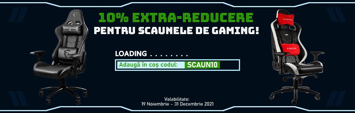 Dacă nu vrei să termini vacanţele de iarnă anchizolat de la stat nemişcat în fata PC-ului sau TV-ului, ar fi o idee bună să faci o achiziţie de scaun de gaming. Mai ales pentru că evoMAG a pornit o campanie de reduceri care aduce 10% extra reducere celor care adăugă în coş un scaun şi codul "SCAUN10". Iată câteva produse alese de noi: