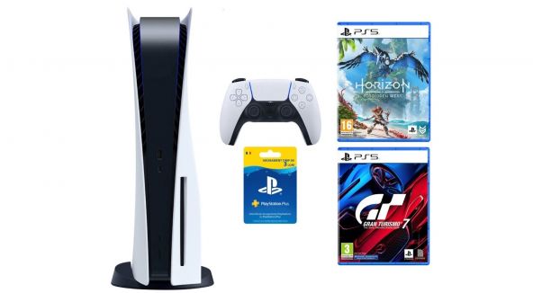 A revenit bundle-ul acela atractiv de PS5 la eMAG, de această dată la suma de 3499 lei. El include o consolă PS5 cu disc Blu-Ray, cu SSD de 820 GB, cu audio spaţial şi grafică cu ray tracing. Vine la pachet cu jocul Horizon Forbidden West, dar şi jocul Gran Turismo 7 şi abonament PS Plus pe 90 de zile. Oferă gaming la 120 FPS cu o rată de refresh rate de 120 Hz. Oferă un feedback haptic, declanşatoare active, suport HDR, output 8K la playback.