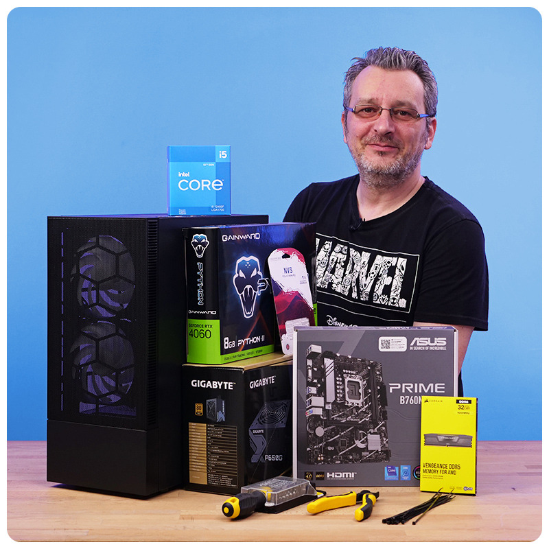 Acest kit de PC gaming include un procesor Intel i5-12400F, 32 GB RAM DDR5, SSD de 1 TB și placa video RTX 4060 de 8 GB. Este conceput pentru entuziaștii care doresc să-și asambleze propriul sistem. Iluminarea RGB și posibilitatea de upgrade îl fac o alegere versatilă.