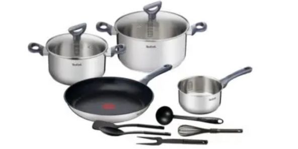 La evoMAG am dat peste setul de 11 vase Tefal, ideal pentru gătit, care acoperă toate necesităţile unei locuinţe. Sunt 11 la număr şi includ oale cu capac, tigaie, cratiţă şi 5 ustensile. Ar fi 389 lei de obicei, dar cu codul „20extra” ai 20% extra reducere, adică tai 76 de lei din preţ şi te duci spre 300 lei. Ai şi tel, polonic, spatulă şi cleşte inclus.