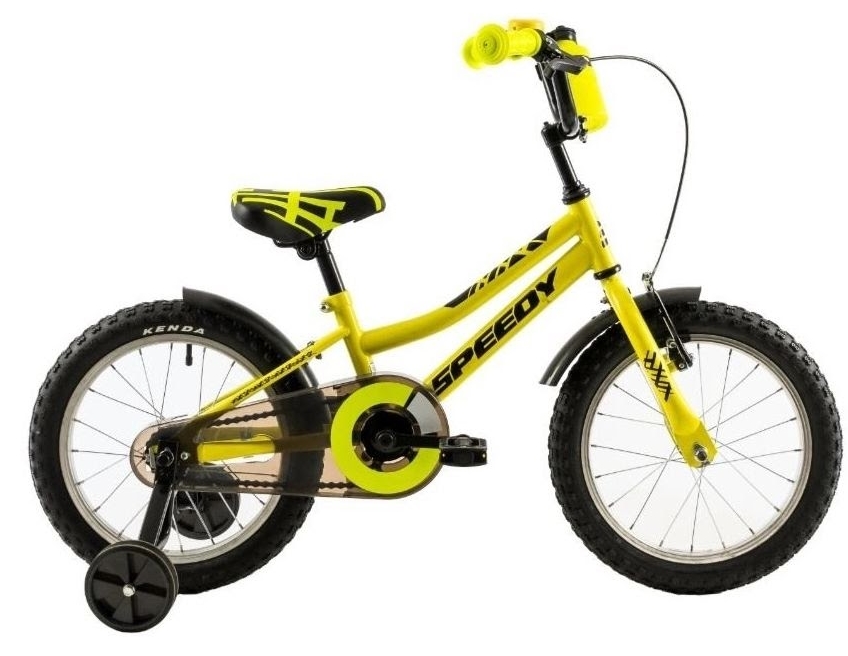 Aceasta bicicletă este excelentă ca un cadou de 1 iunie pentru un copil. Are roţi ajutătoare, dar şi designul unei biciclete sport sau mountain bike, în miniatură. Costă 449 lei la evoMAG şi vine cu dimensiune a roţii de 16 inch, 1 viteza, frână pe față tip cleşte şi pe spate torpedou. Are furcă fixă din oţel şi o nuanţă galbenă atractivă.