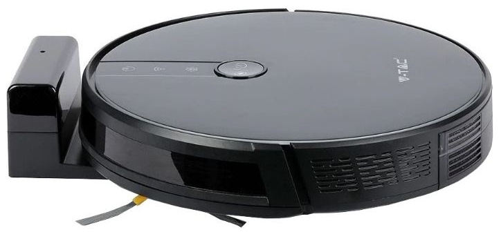 Unul dintre cei mai ieftini roboţi aspirator din oferta eMAG este acest model de 899 lei. Are funcţie de aspirare şi mop, rezervor de 600 ml şi baterie de 2500 mAh. Poate curăţa, mătura şi aspira şi vine cu navigare auto programată, funcţionare cu un singur buton şi pornire automată. Se poate conecta uşor la reţelele WiFi pentru un control prin intermediul aplicaţiei V-TAC.