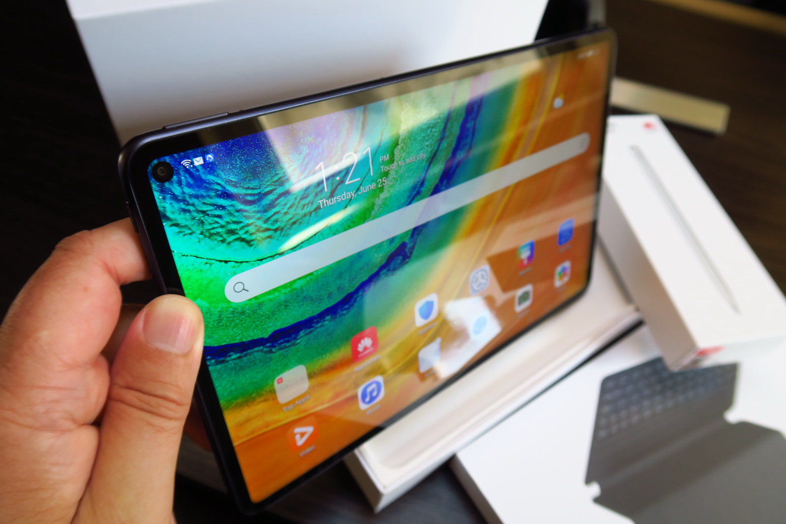 Tableta Huawei MatePad Pro, unul dintre cele mai potente terminale Android cu ecran mare din ultimul an costa 2249 lei la Altex acum. Sau puteţi alege varianta resigilta la 2024 de lei. Vine cu 128 GB stocare, 6 GB RAM, procesorul puternic Kirin 990, iar ecranul este un LCD de 10.8 inch cu rezoluţie de 2560 x 1650 pixeli. Are şi baterie de 7250 mAh, care asigură 12 ore de playback video şi suporta interacţiune cu stylus şi tastatura. În spate se afla o cameră de 13 MP cu autofocalizare şi filmare 4K, alături de o cameră de 8 MP decupată în ecran. Avem şi 4 difuzoare la bord, dar şi încărcare rapidă pe fir la 40W şi chiar încărcare wireless.