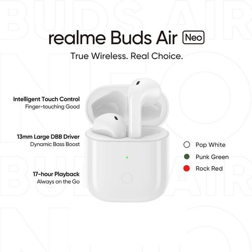 5. Căşti True Wireless Realme Buds Air Neo, Waterproof IPX4, Bluetooth 5.0 (Alb)