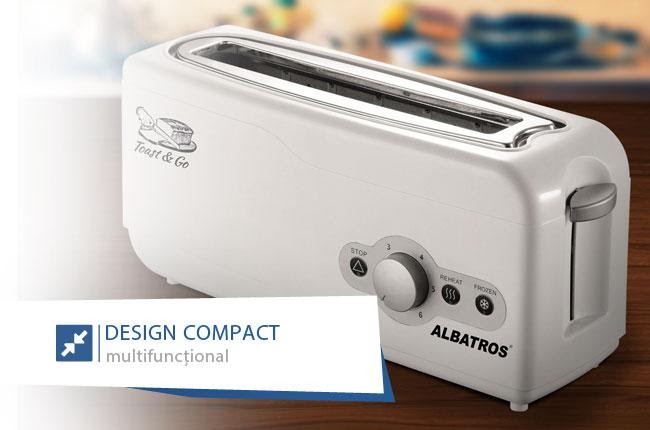 Dacă vreţi un prăjitor de pâine old school, că pe vremuri, am găsit un model nostalgic şi ieftin la ITGalaxy, la 62.99 lei. Are design compact, vine cu o singură fanta de 36 cm şi îţi permite să prăjeşti 2 felii de pâine simultan. are 6 trepte pentru rumenirea pâinii şi vine cu funcţie de dezgheţare şi reincalzire.