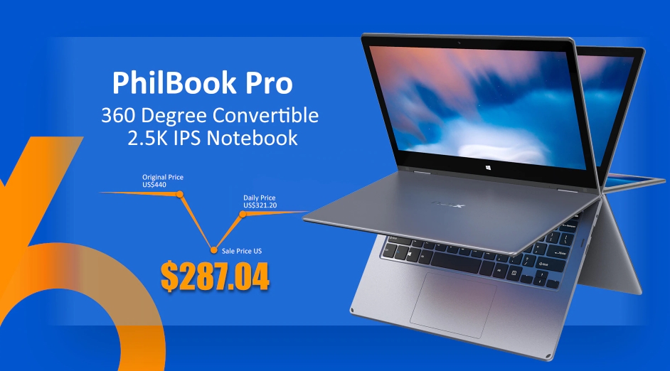 Avem și un laptop interesant pe lista de reduceri și anume modelul XIDU PhilBook Pro pe care îl vedeți mai sus. Vine echipat cu o balama rotativă la 360 grade, un ecran IPS LCD de 11.6 inch cu rezoluție de 2560 x 1440 pixeli și rulează Windows 10. La interior apare procesorul Intel Celeron J3355 și mai avem 6 GB RAM + 128 GB stocare. Prețul scade la 287.04 dolari.